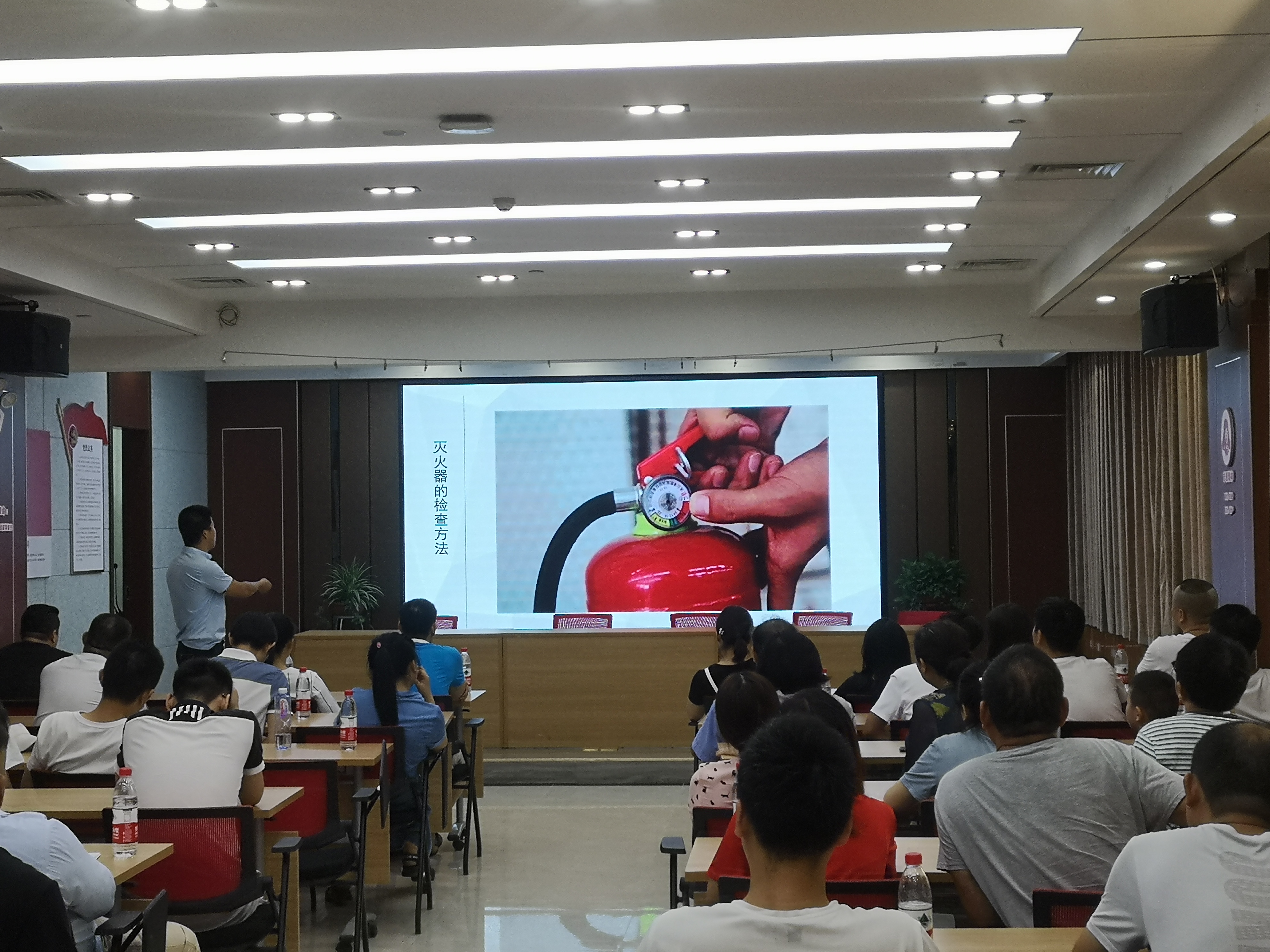 本次消防演练很荣幸邀请到了辖区泛海消防中队的教官给公司员工进行了一场安全消防知识科普讲座。消防教官利用以往案例让我们对“火灾当中,切记不要贪恋财物!生命只有一次!”这句话有了深刻地体会。教官在讲座上教导我们在火灾刚发生时,正确判断火势大小,如何在火势较小时正确扑灭火源。